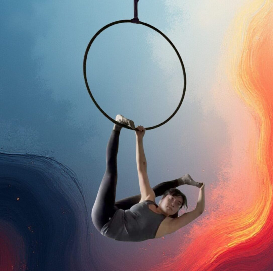 Aerial Hoop (also known as Lyra) combines dance, circus skills, choreography and fitness. The aerial hoop is wrapped to create grip, suspended from the ceiling on which you can perform a range of moves, drops and poses. It offers many ways to target all the major muscle groups. In an Aerial Hoop class, you will build strength and flexibility with a range of strength building, conditioning, tricks and inverts.