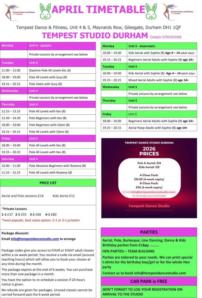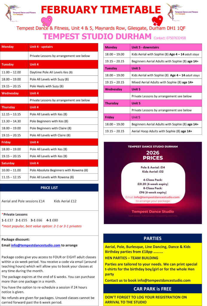 Please Note: This studio is located in Durham, United Kingdom (UK). All classes booked here are held in-person at our UK location. Please ensure you are able to attend before booking. No refunds will be issued for bookings made in error.